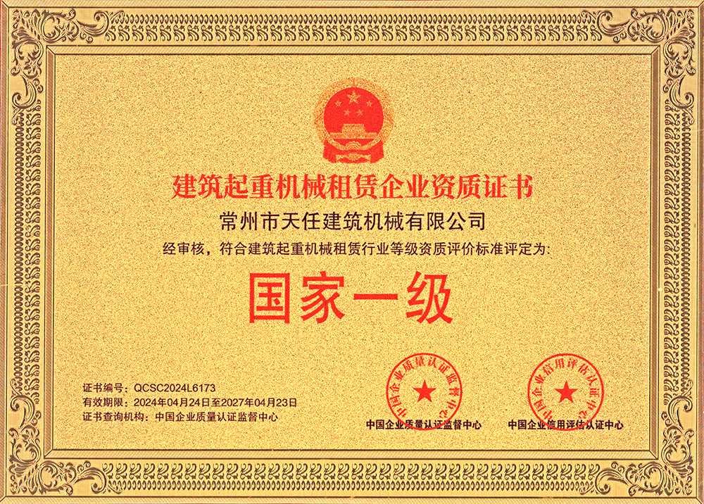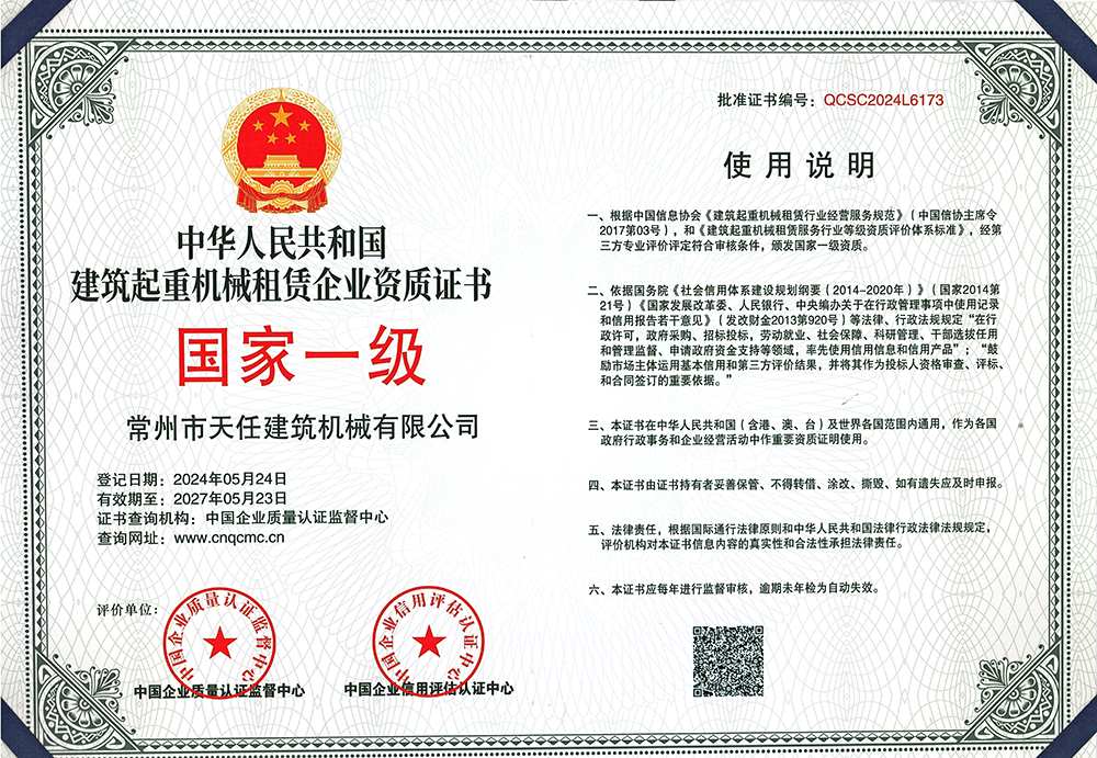 建筑起重機械租賃企業(yè)資質(zhì)證書